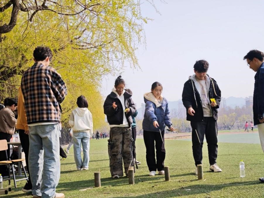 当日,活动吸引了众多同学踊跃参与,活动现场沉浸一片欢乐与活力的氛围中。活动紧扣“放松心灵、追逐梦想”的主题,内容丰富多元。在“心灵之筝,拥抱天空”环节中,同学们手持自制风筝在操场上奔跑,风筝随春风高飞,不仅放飞了同学们的梦想,也展现出青春的蓬勃朝气。“百发百中”投壶游戏区同样热闹非凡,大家兴致勃勃投掷竹箭,在传统游戏中享受欢乐、放松心情。“心声漂巡,汇流成河”漂流书签活动中,同学们认真书写心愿与祝福,将彩色书签悬挂展示,一面温暖的“心声墙”就此诞生。现场互动交流区氛围热烈,同学们团聚一起共同探讨心理健康话题。