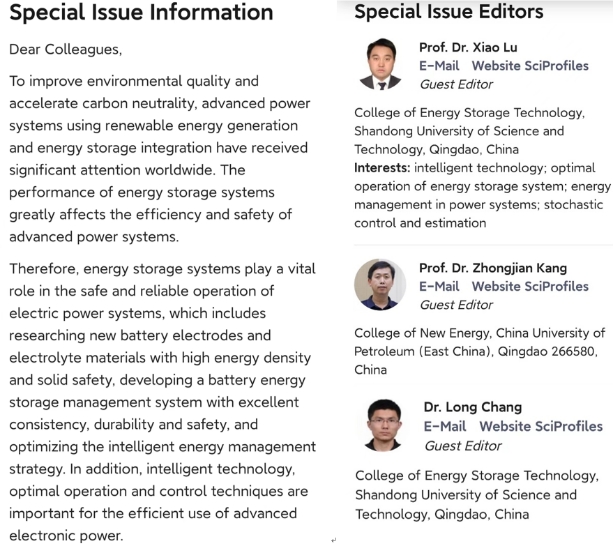 点击:近日,即時比分球探比分 卢晓教授应国际期刊《Energies》杂志邀请,担任该刊物的客座编辑,负责稿件征集和同行评议等事宜。根据当前国际储能技术的研究热点并结合即時比分球探比分 研究方向及卢晓教授的研究领域,开设了“Intelligent Technology, and Optimal Operation of Energy Storage System”主题,并在世界范围内向相关研究人员征集符合该主题的研究论文和综述。这将对进一步提升我校在储能技术、储能系统优化运行、智能控制技术等领域的国际影响力产生积极作用。
