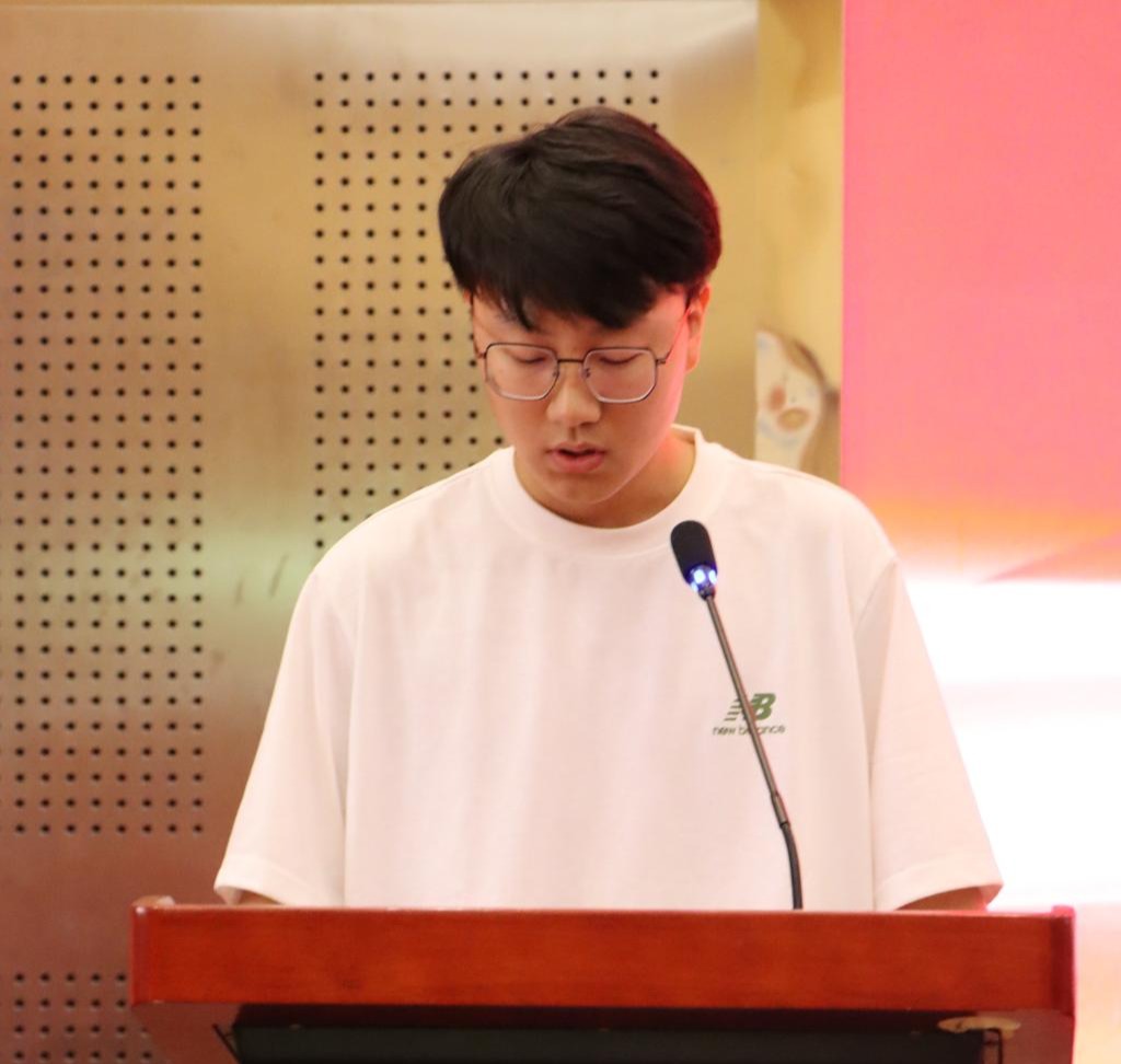 教师代表付民发言,他对新生如何适应高中到大学的身份转换给予指导并提出三点忠告。一是做人有底线、有原则,保持独立的人格尊严,树立正确的人生观、世界观和价值观最重要。二是智慧源于勤奋,伟大出自平凡,把握当下,珍惜时光,点滴积累才能厚积薄发。三是凡事预则立,不预则废,树立目标,做好规划,辛勤耕耘,终将收获美好。
